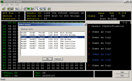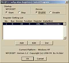 Утилита WPCRSET дает возможность автоматически "подправлять" во время загрузки операционной системы указанный ей регистр одного или нескольких устройств. Нам она поможет закрепить "лечение" после того, как мы узнаем адрес устройства на шине PCI.