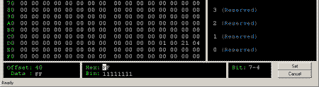 Шаг 3. Теперь нужно изменить значение "80" на "FF". Для этого в нижней строке программы, там, где написано "Hex: 80", нужно ввести "FF". Щелкните мышью, введите и нажмите кнопку "Set". Проверьте, чтобы значение поменялось в основном окне программы, в первом столбце строки "40".