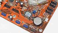 Это дает возможность использовать компьютер в качестве сервера домашней сети или программного маршрутизатора. Названные однопортовые гигабитные сетевые трансиверы серии Alaska производства компании Marvell получили довольно широкое распространение. Помимо таких достоинств микросхем, как высокая производительность, низкое энергопотребление и малые размеры, хотелось бы выделить поддержку ими фирменной функции виртуальной диагностики кабеля Virtual Cable Tester, с помощью которой можно определить место повреждения проводника с точностью до метра. Marvell 88E8053 применен в 96-контактном BCC (Bump Chip Carrier) варианте упаковки с размерами корпуса 9х9 мм, тем самым позволяя значительно сэкономить место на текстолите. Для связи с чипсетом микросхема использует линию PCIe, что может только положительным образом сказаться на производительности. Владельцы цифровых видеокамер или прочих устройств, оснащенных интерфейсом FireWire, также не будут обделены: на 8EKRS располагается контроллер производства Texas Instruments TSB43AB22A, обеспечивающий поддержку двух портов IEEE 1394a.
