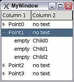 В нашем примере показано, как в TreeView добавляются две колонки с текстом. При создании класса TreeStore также нужно указать, какого типа будут колонки. Их количество определяется автоматически, т.к. конструктор (TreeStore(params System.Type[]) принимает в качестве своего параметра массив объектов. Аналогично действует метод AppendValues (AppendValues(params object[]) : TreeIter). Он возвращает итератор, который затем можно использовать для добавления дочерних элементов.