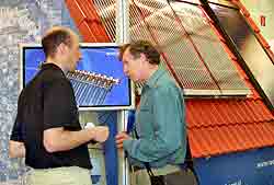 Особенно тем ее посетителям, которые представляют развивающиеся страны. Дело в том, что, кроме решения чисто утилитарных задач, на ISH в рамках сопутствующих ей мероприятий: конкурсов, специальных выставок, форумов, конгрессов, — рассматриваются и обгоняющие время направления и решения. В том числе те, которые вызывают желание размышлять и спорить. Вот и на ISH 2005 различных мероприятий будет немало. К примеру, особый интерес должна вызвать специальная выставка "Системные возобновляемые источники энергии для зданий" (Renewable energies in systems for houses). Ведь одну из основных тем предстоящей ярмарки составит все, что касается использования возобновляемой энергии. Указанная специальная выставка будет посвящена, прежде всего, системной интеграции так называемых классических способов отопления со способами, основанными на применении возобновляемой энергии. В центре внимания сопровождающих эту выставку докладов окажутся вопросы разработки, совершенствования и применения гелиосистем с солнечными коллекторами и фотогальваническими элементами, тепловых насосов, работающего на древесном (в том числе таблеточном) топливе отопительного оборудования, а также электрохимических генераторов, вырабатывающих электроэнергию из водорода и кислорода в результате электрохимической реакции без процесса горения.