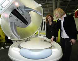 2. Мы не в первый раз посещаем ярмарку ISH и хотим заметить, что каждый год все ее участники предлагают новинки. Однако в этом году их количество в нашем секторе было не столь большим, как в прошлый раз на ярмарке ISH 2003. Впрочем, есть и исключения. Например, компания Villeroy & Boch представила пять новых коллекций сантехники и мебели, интересные смесители и ванны весьма оригинальных форм. Кроме того, были показаны такие технические инновации, как система «чистый воздух» для унитазов и система аромотерапии с эффектом тумана для гидромассажных ванн — для релаксации и увлажнения кожи. На ярмарке ISH 2005 можно было также увидеть много технически сложного сантехнического оборудования: например, душевые кабины с паровой баней и со всевозможными функциями. Показательно, что они сложнее в техническом отношении, чем предыдущее поколение подобной продукции, но проще и удобнее ее в управлении и эксплуатации.
