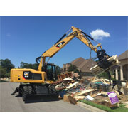 Это колесный экскаватор Cat M316F. Компания Louisiana Cat заказала четыре эквкаватора M316F, оснащенных специальными грейферами для сбора отходов, которые были доставлены в наиболее пострадавший район столичного города Батон-Руж. За тридцать дней эти четыре машины убрали тысячи тонн мусора. Гленнт Дюплантис высоко оценил работу команды Caterpillar, которую она проделала, чтобы обеспечить доставку оборудования на место и самое оперативное введение его в работу.