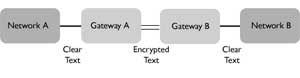 Всякий раз, когда соединение сетей обслуживают два VPN-шлюза, они используют режим туннеля. Это означает, что шифруется весь пакет IP, после чего к нему добавляется новый IP-заголовок. Новый заголовок содержит IP-адреса двух VPN-шлюзов, которые и увидит пакетный сниффер при перехвате. Невозможно определить компьютер-источник в первом домене шифрования и компьютер-получатель во втором домене.